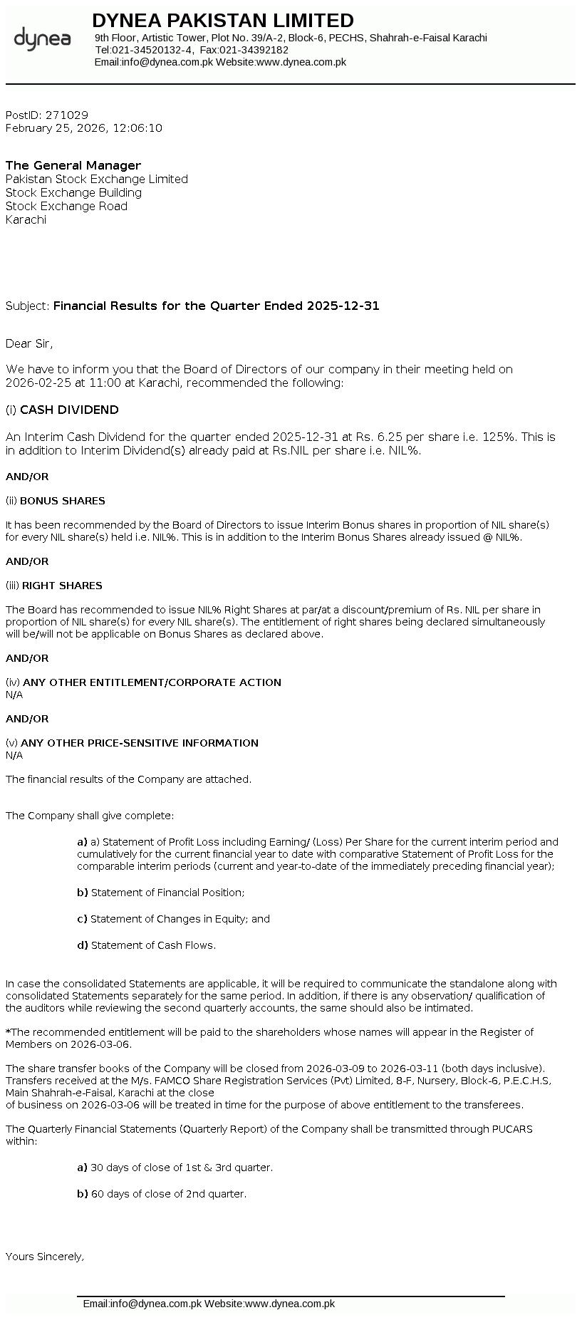 Latest Dividend