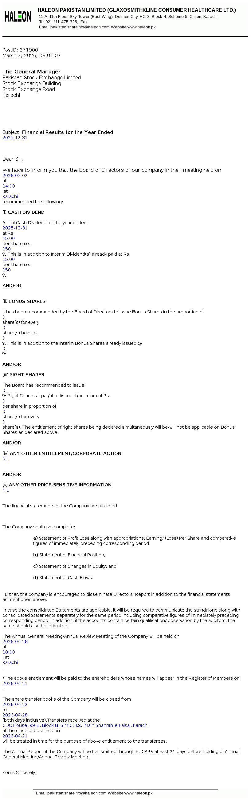 Latest Dividend