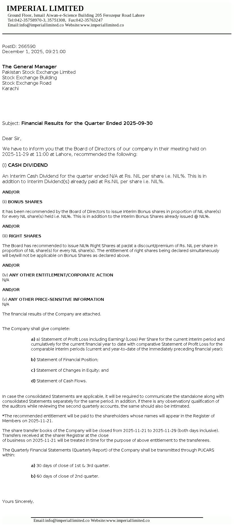 IML | Imperial Limited Financial Results for the Year Ended 30-06-2025