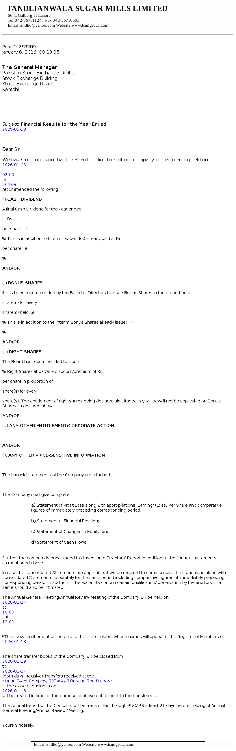 Latest Dividend