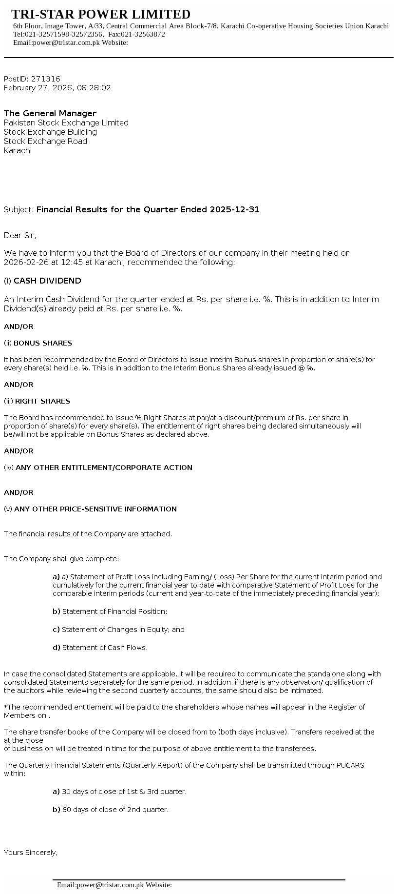 Latest Dividend